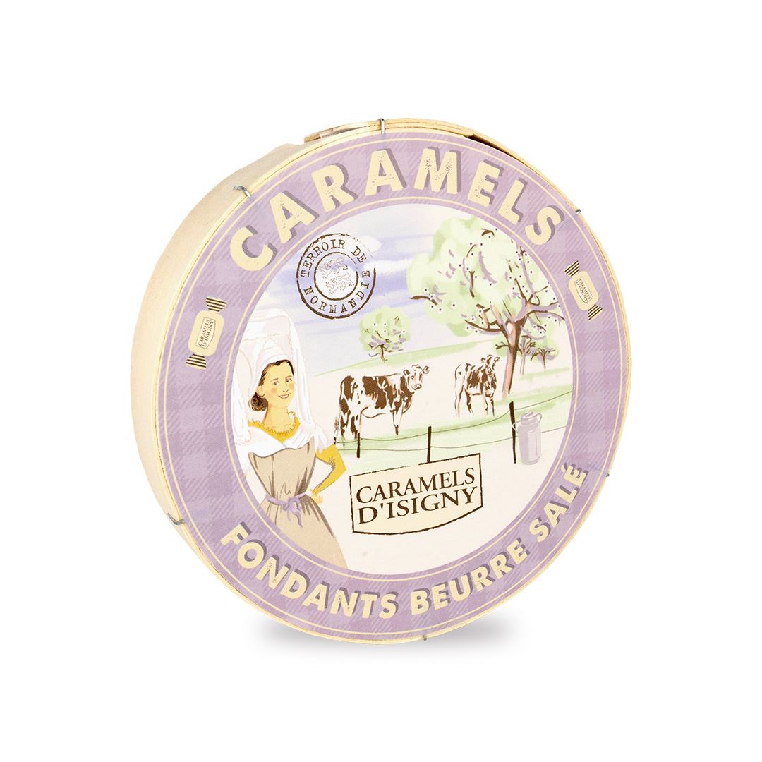 Ingrédients : Sucre, sirop de glucose, LAIT entier en poudre, BEURRE salé d’Isigny A.O.P. (11%), eau, sel de Guérande IGP (1,7%), arôme naturel de vanille, poudre à lever : Bicarbonate de sodium, émulsifiant : Sucroesters d’acides gras. Traces : Soja, fruits à coques.