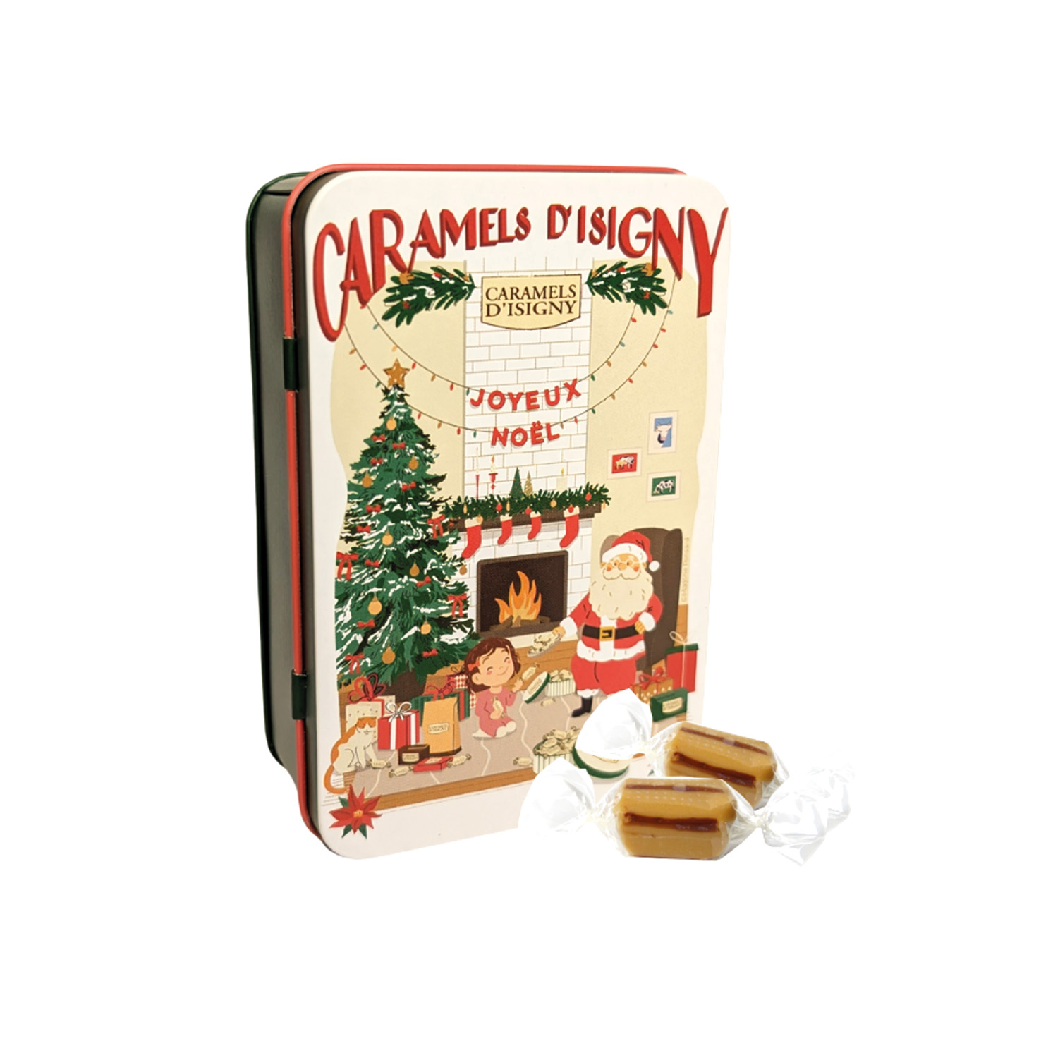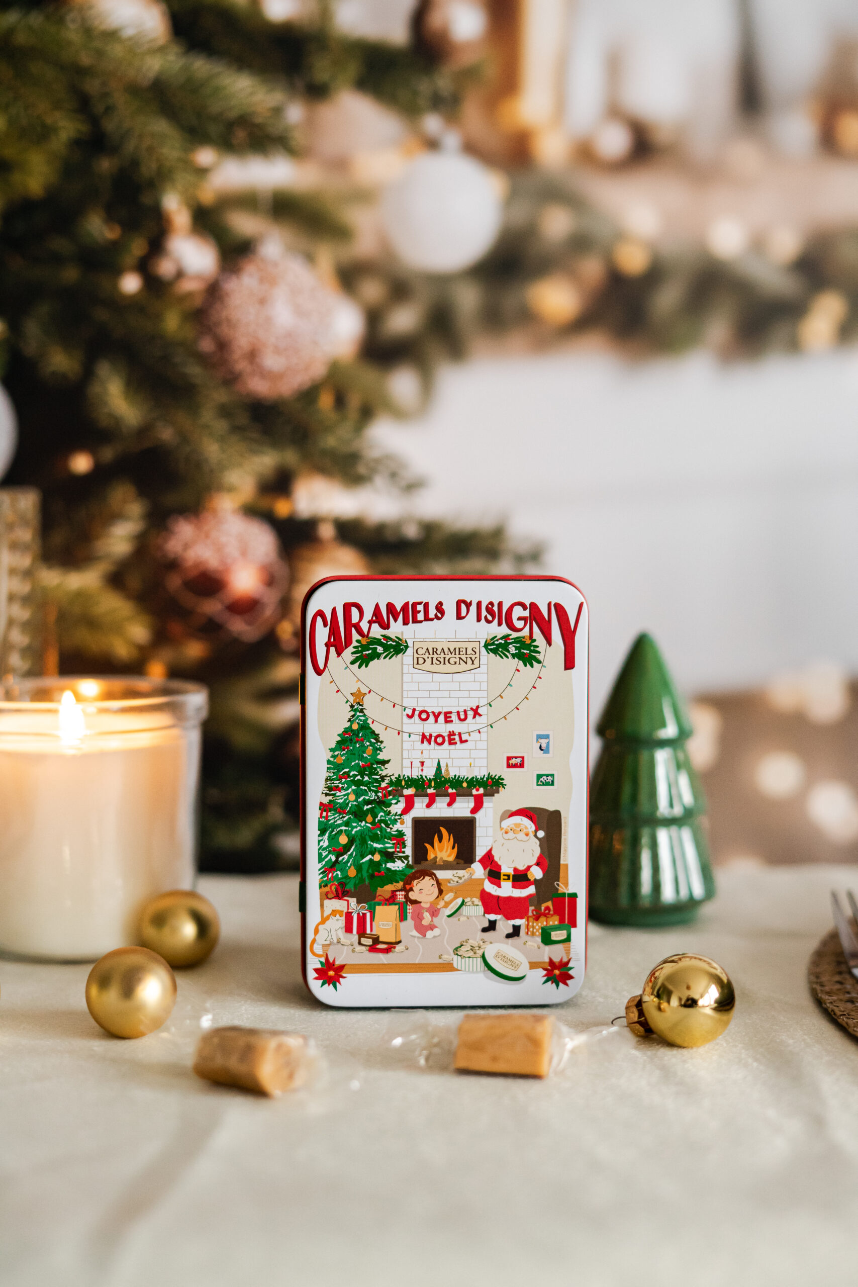Petite boite au décor de Noël à glisser sous le sapin. Les caramels fondants vanille marbrés chocolat ne collent pas aux dents !